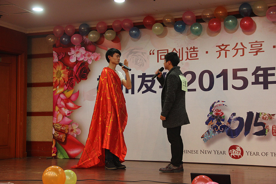 晚會(huì)接近尾聲,評委組評選出了當(dāng)晚最受大家喜愛的節(jié)目,它們分別是《打水的姑娘》和《土豪的世界》《小蘋果》 ,由公司法律顧問徐律師為他們頒發(fā)了紅包獎(jiǎng)金!歡聲如歌,笑語如夢,歡快的時(shí)光總是很短暫,伴隨著一首溫暖的歌曲,四個(gè)小時(shí)的新春晚會(huì)落下了帷幕。大家仍流連忘返,滿懷感恩,向2014年依依作別,載滿希望,我們一起憧憬公司2015年新的輝煌!