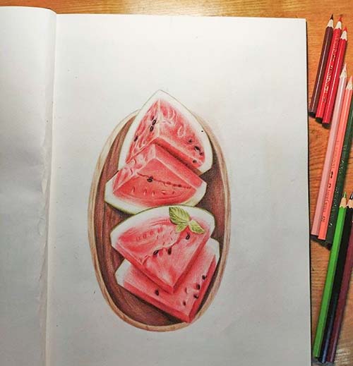 彩鉛手繪作品-西瓜