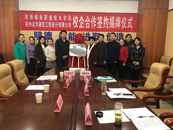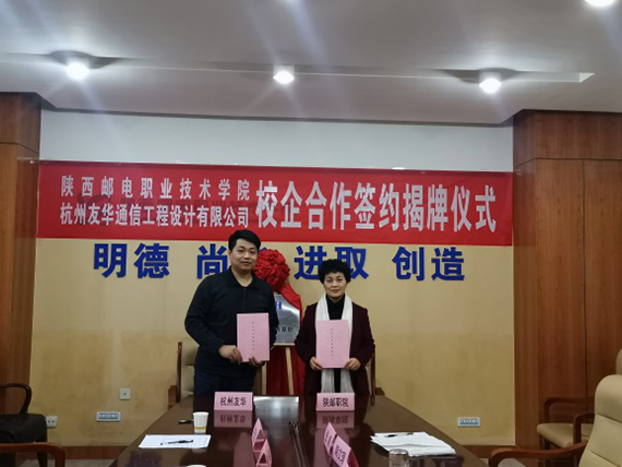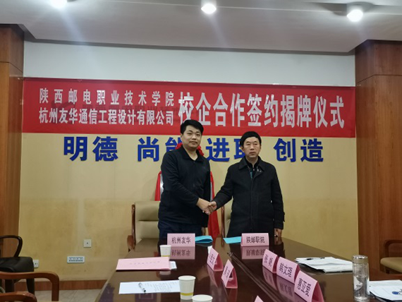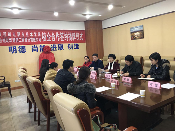 2019年12月17日,陜郵職院與杭州友華校企合作簽約揭牌儀式于陜西郵電職業技術學院教學樓正式舉行。